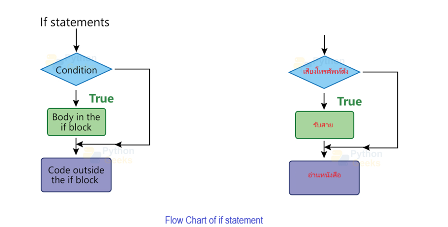 if Statement ใน Python คือคำสั่งเลือกหรือตัดสินใจเลือกจะทำหรือไม่ คล้ายกับการตัดสินใจของมนุษย์ในการเลือกทำหรือเลือกข้ามการกระทำในสิ่งนั้น โดยใช้ร่วมกับเงือนไขที่กำหนดเอาไว้ล่วงหน้า เช่น ถ้าหากว่ามีเสียงโทรศัพท์ดัง เราจะรับสาย เป็นต้น ดังนั้นจึงมีเงือนไขคือ เสียงโทรศัพท์ดัง จึงสามารถใช้คำสั่งเป็น if เสียงโทรศัพท์ดัง: รับสาย