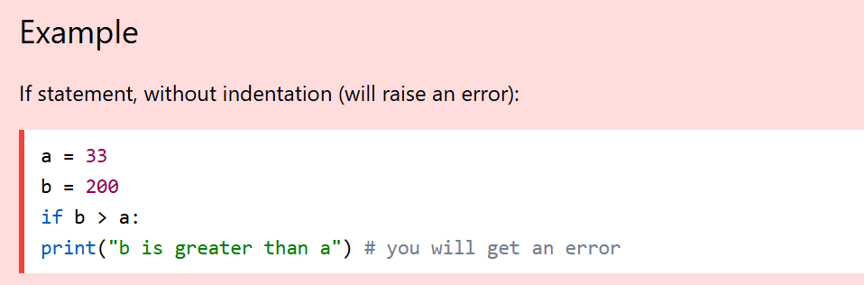 ในภาษา python การเยื้องบรรทัดเปฺ็นสิ่งสำคัญมากสำหรับการจ้ดกลุ่มคำสั่ง หรือลำดับความสำคัญของคำสั่ง ที่อาจจะอยู่ภายใต้เงื่อนไขการทำงาน หากไม่่มีการเยื้องบรรทัด หรือการเยื้องไม่ถูกต้องอาจจะทำให้การทำงานของโปรแกรมเกิดข้อผิดพลาดได้ เช่น