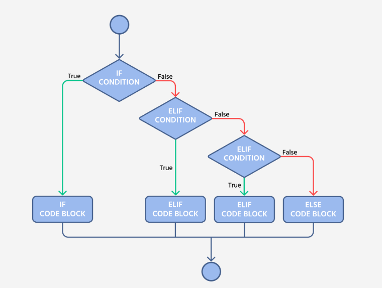 elif: ถ้า if แรกเป็น False จะมาตรวจสอบเงื่อนไขนี้ (มีได้หลายตัว)
