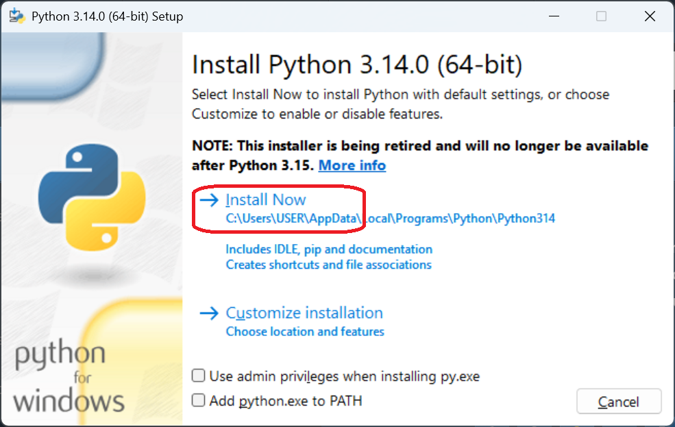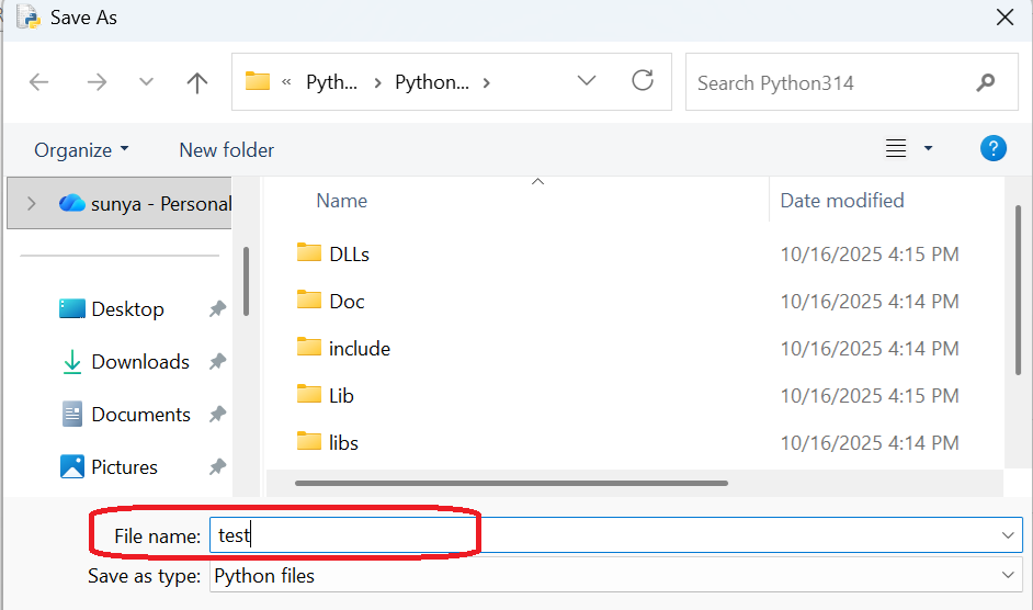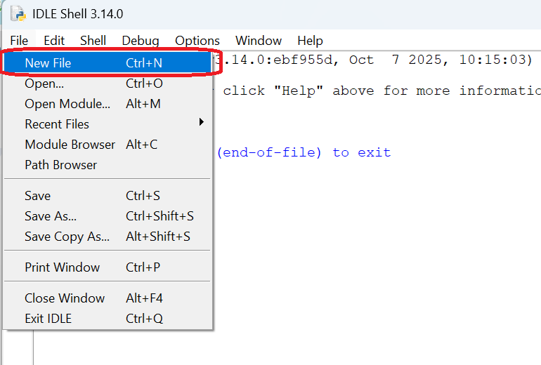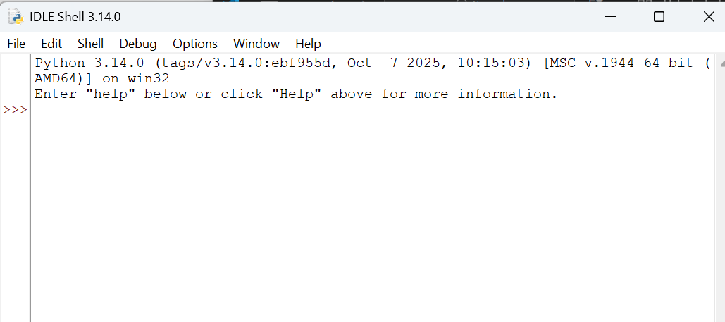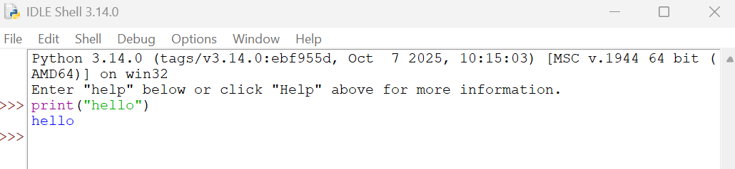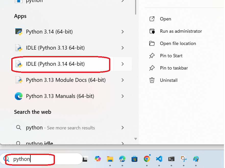 Type python in the search of window you will see IDE(Python 3.14) program. Click it to open IDLE program