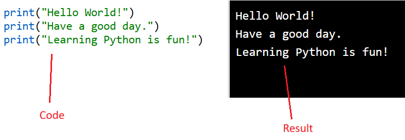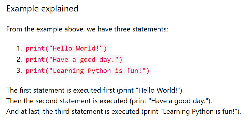 Most Python programs contain many statements. The statements are executed one by one, in the same order as they are written: