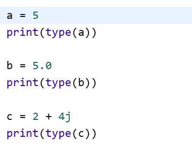 Float: value is represented by float class. It is a real number with a floating-point representation. It is specified by a decimal point. Optionally, character e or E followed by a positive or negative integer may be appended to specify scientific notation.