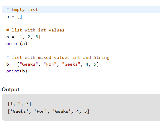ลิสต์มีความคล้ายคลึงกับอาร์เรย์ที่พบในภาษาโปรแกรมอื่นๆ มันเป็นชุดของรายการที่เรียงลำดับและเปลี่ยนแปลงได้ มีความยืดหยุ่นสูงเนื่องจากรายการในลิสต์ไม่จำเป็นต้องเป็นชนิดเดียวกัน