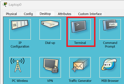 4. Open a terminal to perform the initial configuration of Cisco router via CLI command