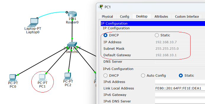 Another host system deployed in the network is assigned with required logical addresses through the DHCP server configured on Cisco Router. In addition, IP addresses defined in the excluded range are not assigned to the computer systems.