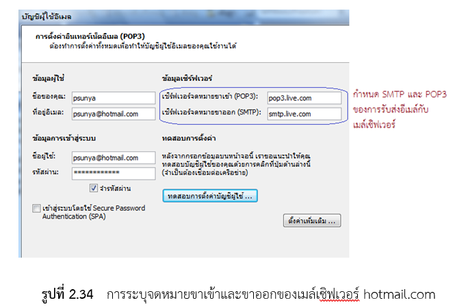 การรับอีเมล์ ผู้ใช้ก็สามารถเปิดอ่านด้วยเวปไซต์อีเมล์ หรือใช้โปรแกรมดึงไฟล์อีเมล์ไปเก็บไว้ยังเครืองคอมพิวเตอร์ได้โดยกำหนดให้โปรแกรม Microsoft Outlook บนเครื่องคอมพิวเตอร์ติดต่อมายังเมล์เซิฟเวอร์พร้อมทั้งระบุชื่อผู้ใช้และรหัสผ่าน เมื่อเมล์เซิฟเวอร์ตรวจสอบชื่อและรหัสผ่านถูกต้อง ก็จะอนุญาตให้โปรแกรมดึงไฟล์อีเมล์จากเมล์เซิฟเวอร์ผ่านทางโปรโตคอล POP3 หรือ IMAP4 ดังลักษณะในรูปที่ 2.34