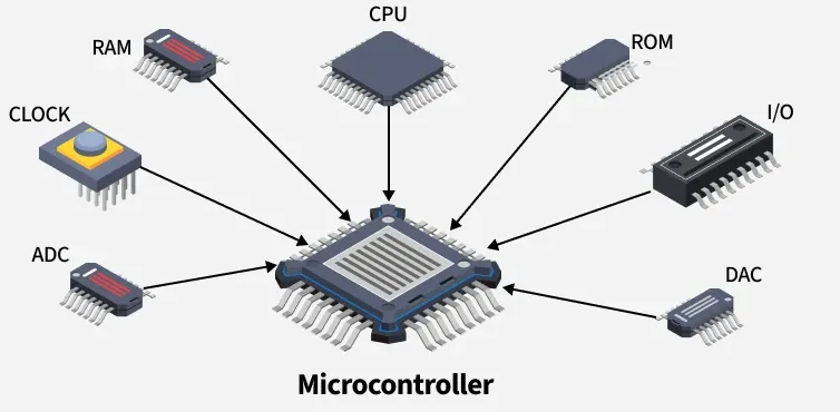 - What it is: A single, self-contained integrated circuit that includes a CPU, memory (RAM and ROM), and input/output (I/O) ports on one chip.