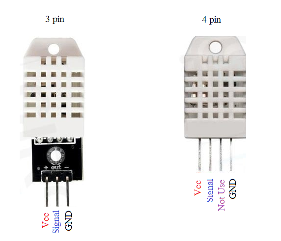 The DHT22 sensor is available in two forms: a 3-pin module and a 4-pin bare sensor.