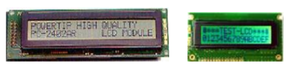 1)LCD แสดงผลตัวอักษร (Character LCD Module) ใช้สำหรับแสดงตัวอักษรและตัวเลข สัญลักษณ์ต่าง ๆ ได้เท่านั้น