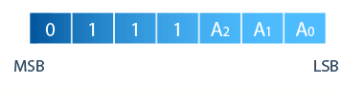 กรณีโมดูล PCF8574 ที่ผลิตจากบริษัท NXP บิตที่ 4 ถึงบิต 6 จะถูกกำหนดให้มีค่าสถานะเป็น 1 ไว้ตลอด ดังในรูป ดังนั้นหากโมดูล PCF8574 ที่ผลิตด้วยบริษัท NXP หากไม่มีการต่อจัมเปอร์ไว้เลยทั้ง 3 ขา (A0 A1 A2) สามารถระบุตำแหน่งเป็น 0x3F