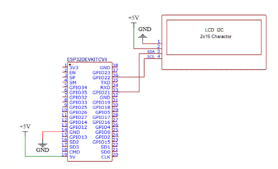 โดยจะใช้ขา GPIO 21 ทำหน้าที่เป็นขา SDA เพื่อข้อมูล และใช้ขา GPIO 22 ทำหน้าที่เป็นขา SCL เพื่อส่งสัญญาณนาฬิกา ไปยังไอซี ของจอLCD