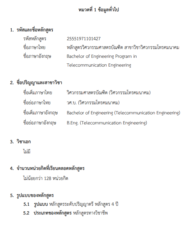 ดาวน์โหลดเอกสาร มคอ.2 ฉบับเต็ม ผลิตบัณฑิตให้มีความรู้ ความเชี่ยวชาญเทคโนโลยีด้านวิศวกรรมโทรคมนาคม สามารถสร้างสรรค์นวัตกรรม มีคุณธรรม จริยธรรม และความรับผิดชอบต่อสังคมเพื่อความยั่งยืน