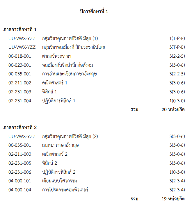 โครงสร้างหลักสูตร